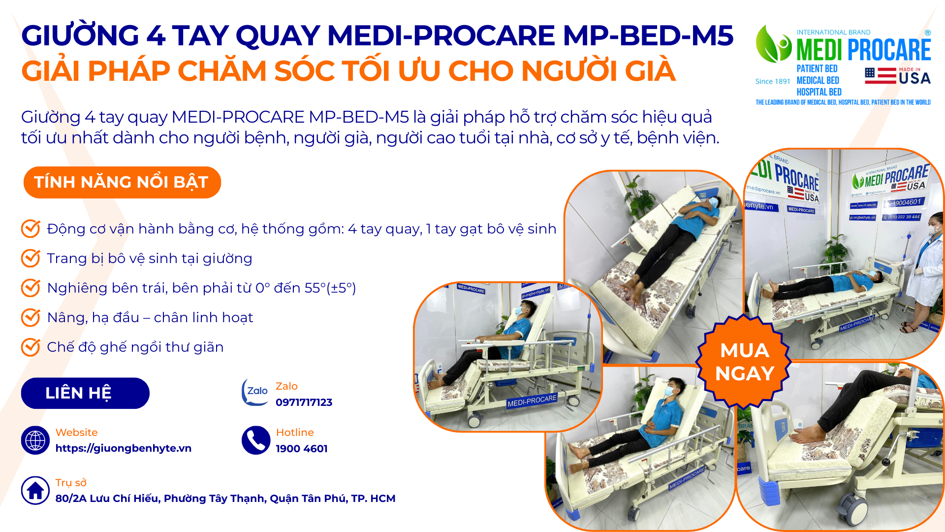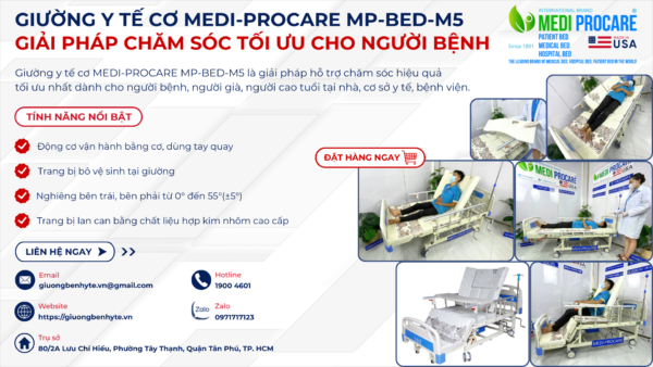 Trong bối cảnh nhu cầu chăm sóc y tế tại nhà ngày càng tăng, việc sở hữu giường y tế, giường bệnh nhân cơ, đa năng, 4 tay quay, có bô vệ sinh MEDI-PROCARE MP-BED-M5 là giải pháp tối ưu giúp người già, người bệnh, người cao tuổi được chăm sóc an toàn, thoải mái ngay tại nhà. Đây không chỉ là thiết bị y tế, mà còn là công cụ hỗ trợ chăm sóc hiệu quả, giảm bớt gánh nặng cho người thân và nhân viên y tế.