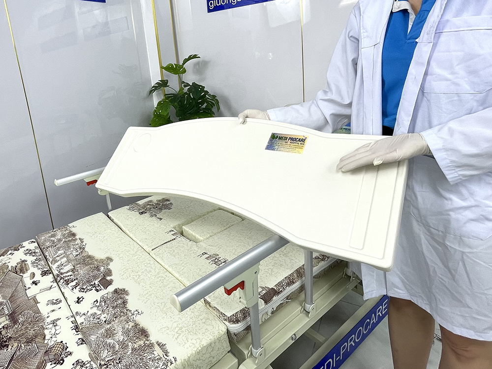 Khi kết hợp với điều khiển cơ tay quay, tính năng này giúp người chăm sóc giảm thiểu công sức, đồng thời mang lại trải nghiệm thoải mái tối đa cho người bệnh. Việc vệ sinh, ăn uống hoặc chăm sóc y tế tại giường trở nên dễ dàng và tiện lợi hơn.