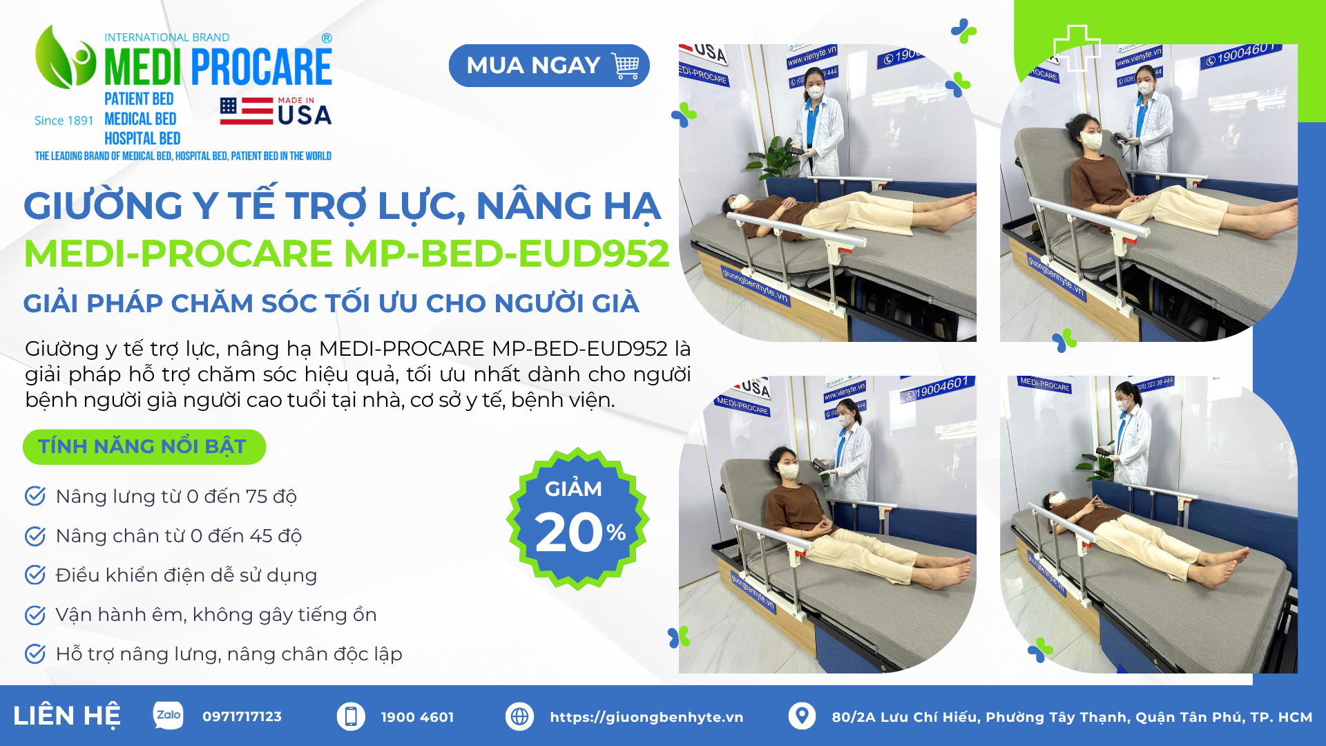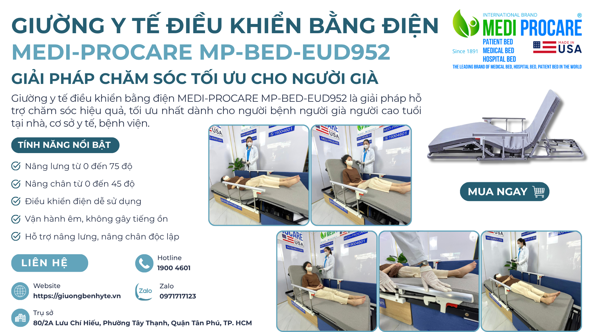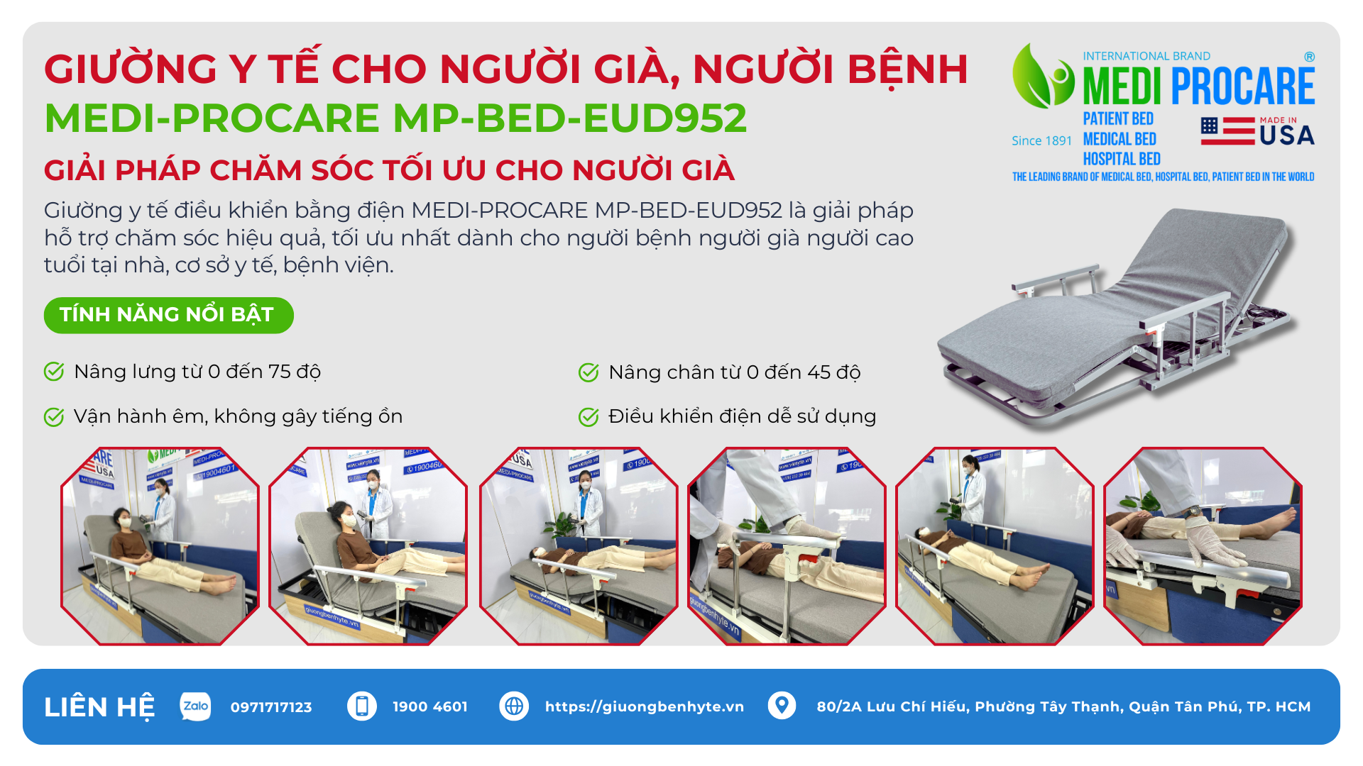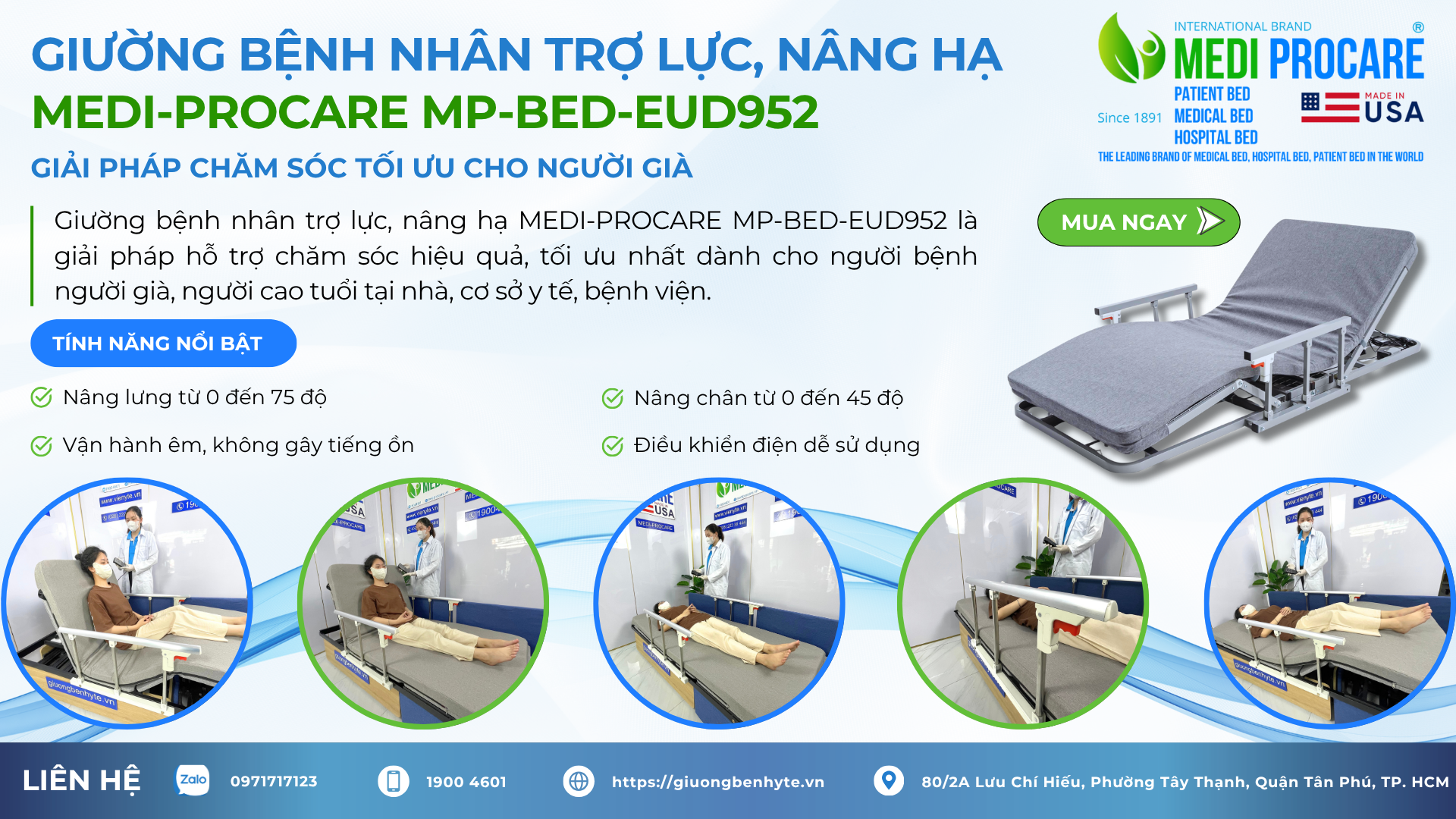 Giường y tế nâng hạ điều khiển điện MEDI-PROCARE MP-BED-EUD952 không chỉ là thiết bị y tế, mà còn là người bạn đồng hành hỗ trợ người bệnh phục hồi sức khỏe tốt hơn mỗi ngày. Với những tính năng hiện đại, thiết kế nhân văn và công nghệ tiên tiến, sản phẩm xứng đáng là lựa chọn hàng đầu cho mỗi gia đình Việt.