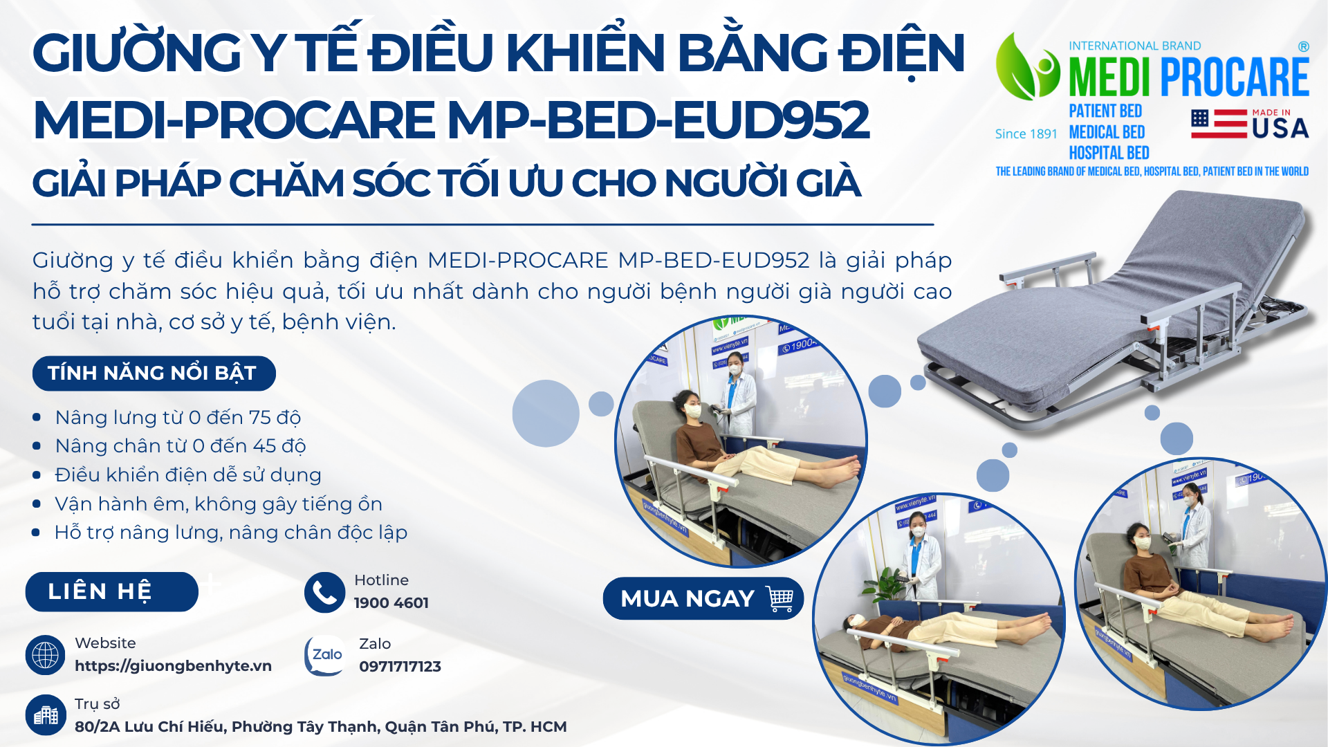 Thương hiệu MEDI-PROCARE hiện cung cấp giường y tế điều khiển bằng điện MP-BED-EUD952 với chính sách giao hàng tận nơi – lắp đặt tại nhà – hướng dẫn sử dụng chi tiết.