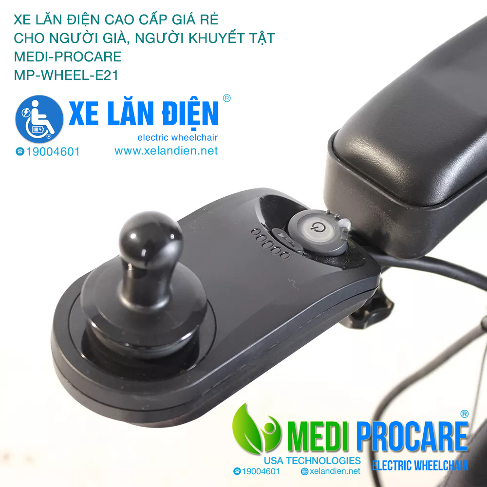 Xe lăn điện cao cấp giá rẻ cho người già MEDI-PROCARE MP-WHEEL-ESC12 có bộ điều khiển trực quan cao cấp với cần điều khiển dễ sử dụng để điều khiển xe tiến, lùi, rẽ an toàn.